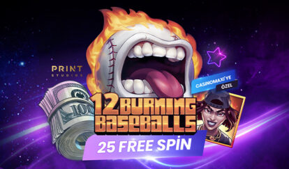 - 12 Burning Baseballs’ta geçerli 25 Free Spin kaza.